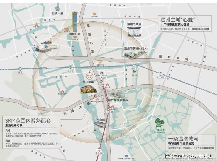 北接醇熟老城,西邻瓯海中心区,东靠中央绿轴,南迎南湖板块,尽揽多板块发展红利。