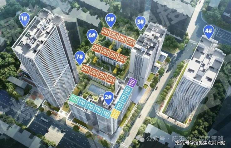 其中5、6、7号楼为总高4层的叠拼,1号楼是总高53层的超高层,2号楼为总高33层的高层。
