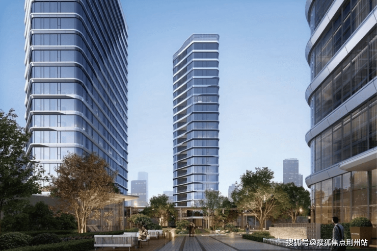 整个园区以围合式布局展开,七幢建筑借鉴中国古典园林的精髓,最大楼间距达到了63米,使得每栋楼都能享受到270°的开阔视野,仿佛是一座座隐匿于花园中的岛屿。为了与景观相呼应,园区立面采用“水晶天幕”设计,线条纤细,使建筑宛如天空中垂下的纯净湖面。