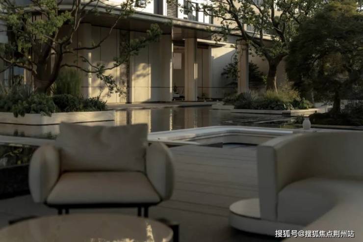 在前场景观体系,苏州招商序又围绕6幕归巢洄游序曲,创新提出将平面景观变成立体景观,通过超600㎡水院与后场归家庭院的嵌套、地面庭院与下沉庭院的垂直呼应、近两百岁名木羽毛枫的点缀,有层次地加强人与人、空间、生活的自然交往。