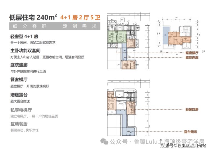 平层总高4层,一层一户,得房率86%,装修标准约5000元每平全屋配备地暖、中央空调、新风系统,提升居住舒适度。厨房配备全套西门子厨具,满足高端烹饪需求。洗碗机为13套款、次卫和客卫非智能马桶、衣柜采用欧派等。横厅朝南,南向站面19米左右,客厅面宽9米。一楼带地下室大约在90~100㎡左右,地下室挑空5.8米,仅20席;顶楼面积150平-157平送露台约20平左右。