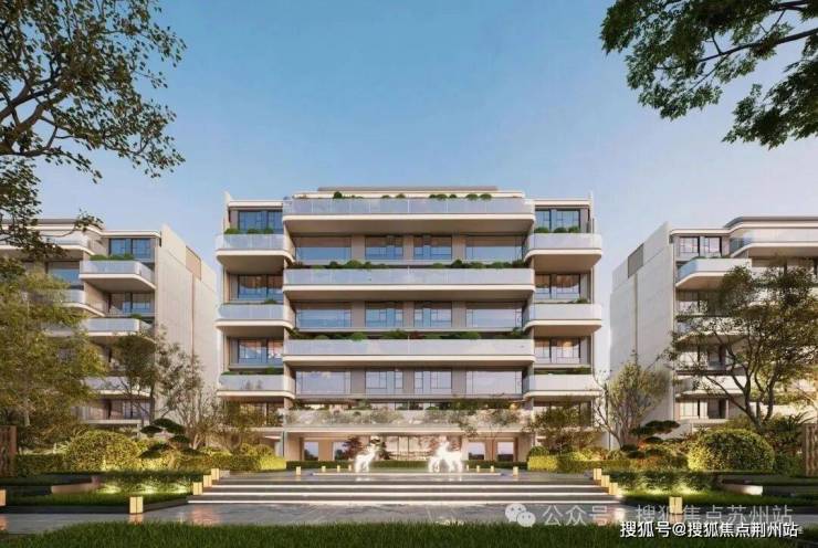 太湖天誉位于吴江太湖新城松陵林涛路88号,吴江城投&象屿联合开发,总占地面积约42014㎡,容积率为1.3,绿地率约30%。四代浮岛花园洋房外立面:铝板、玻璃栏板材质搭配灰金色调曲线。