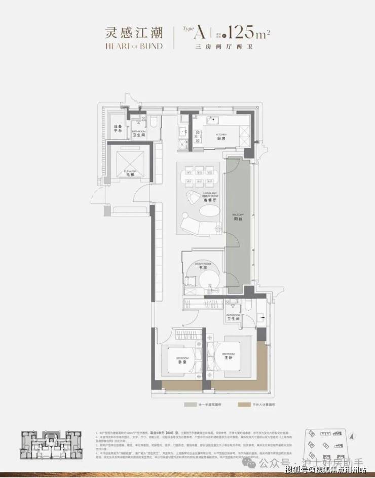 建面125㎡户型,这个户型的含金量和受欢迎程度不用多说,也是前期卖得非常火爆的小户型。