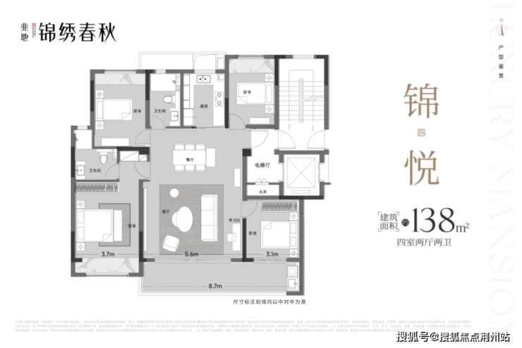 宽厅:建面约138㎡户型即拥有约5.6米开阔厅堂,以超越面积尺度的格局气度,彰显从容待客与家庭聚会的优雅场景
