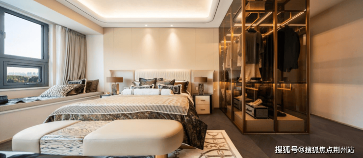 飘窗:部分大户型主卧套房打造270°转角飘窗,以全景视野融汇自然光景,将昼夜晨昏、四季流转温柔纳入私域。