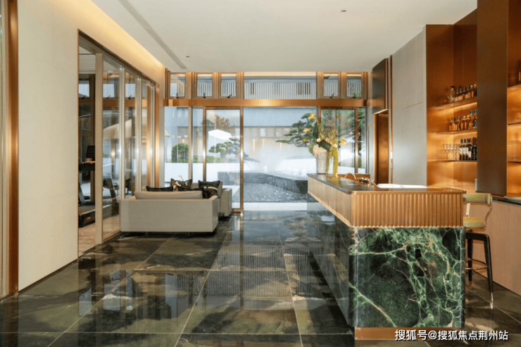 地下车库以星级酒店式入户大堂为标准精装呈现。顶部透光云石铺陈为柔和的光厅,智能系统实现无感通行,以奢石背景墙,勾勒静谧归心之境。