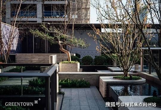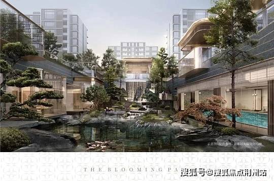下沉式立体山水庭院,结合跌水、月湖、观景平台等元素,营造自然流动感与沉浸式体验。