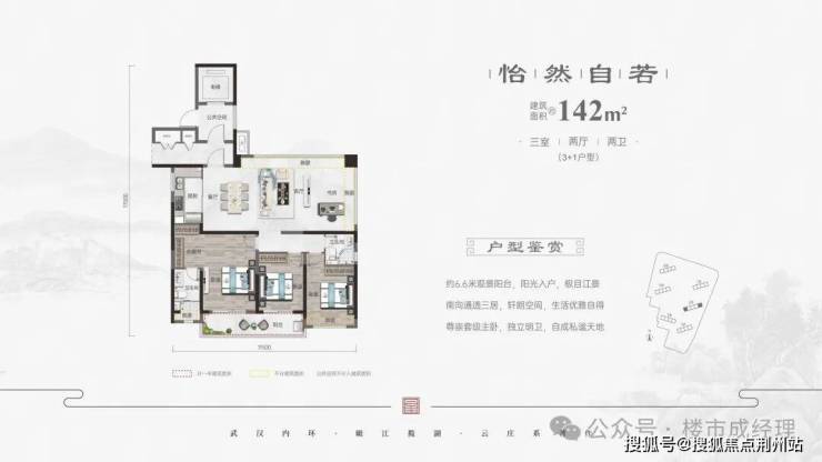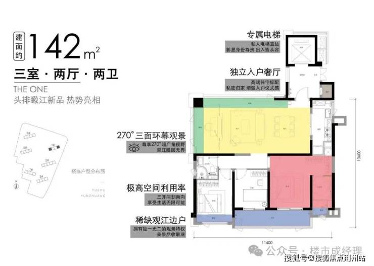 1号楼:142平边户 270°转角瞰江
