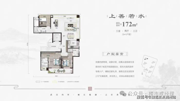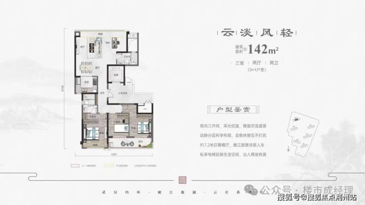 滨江中心:两江四岸汉江核心占位,坐拥一线瞰江视野,四季悦揽无界江景风光。