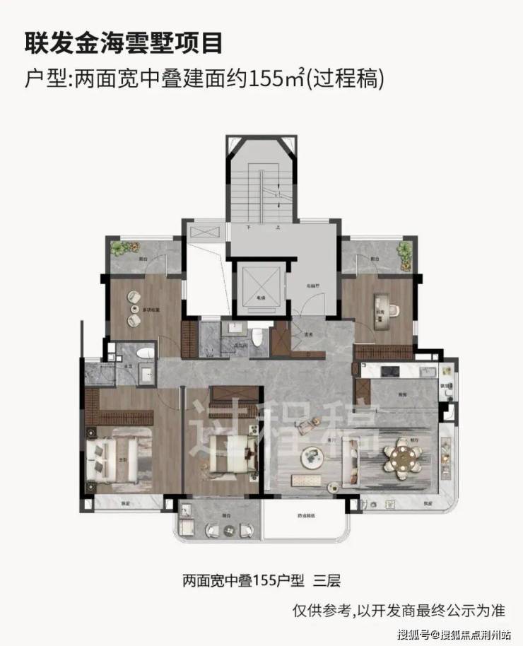 项目部分户型曝光,将推出建面约83㎡的2房,一梯两户,层高约3.5米,可做灵活性三房!