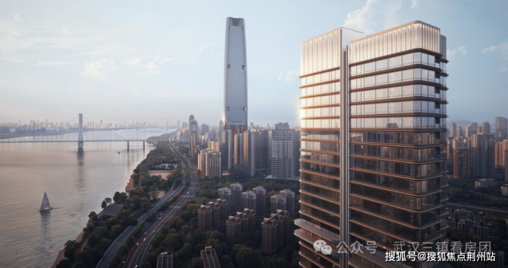 “直线属于人类,曲线属于上帝”。以“江水引向天空”流线型弧线,香槟色铝板、大玻璃面,呈现奢华美学的超流体建筑立面,谱写城市地标的奢华感受。