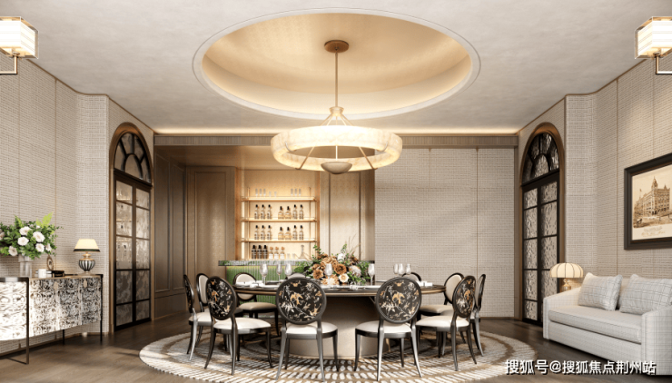 私宴厅延续了传统建筑“天圆地方”的宇宙观,通过华丽的天花造型和复古的家具,展现汉口韵味的空间美学,营造出兼具文化厚度与仪式感的宴会场所,成为预约制高端社交的理想场域。