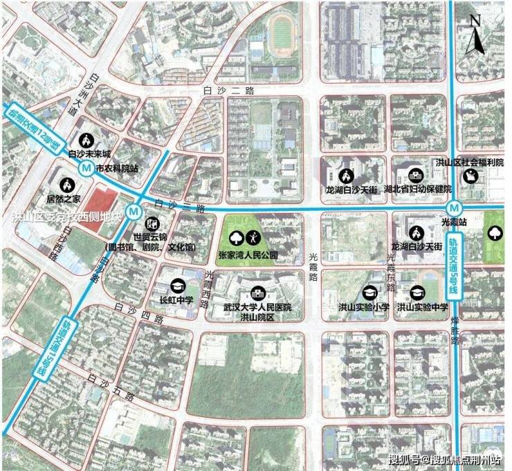 东侧为白沙路、洪山区党校、世茂云锦商业地块等;