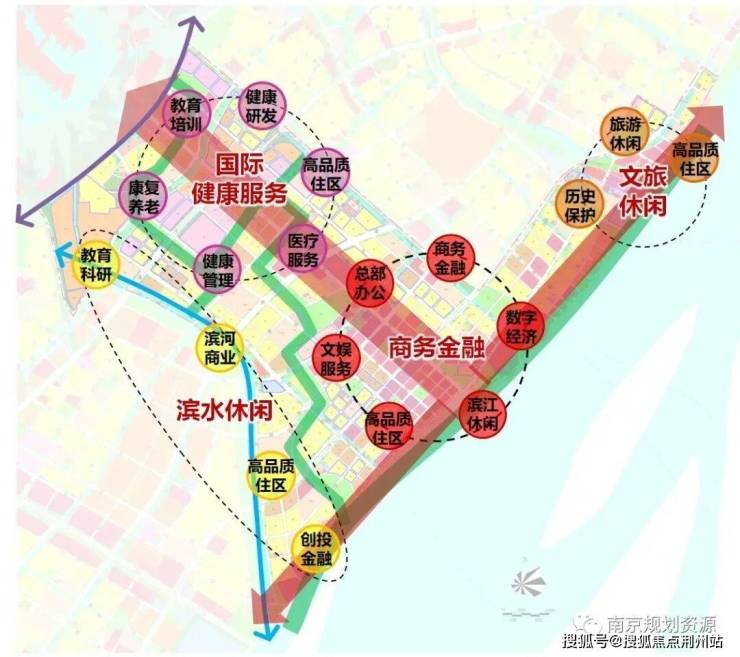 这条全长约 2.5 公里的街道,正处于江北核心区的核心地带。从地图上可见,其沿线汇聚了各类高端服务资源:商业商务、金融服务、总部经济、健康医疗、文旅休闲等产业在此高度集聚,华润万象系商业、扬子江新金融中心、江北地下城、国家健康城、江北市民中心等重要载体也分布在街道两侧,共同构成了区域发展的核心动力带。