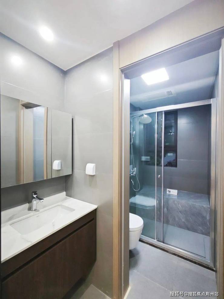 卫生间干湿分离,水龙头、台盆、淋浴花洒和坐便器采用箭牌品牌。