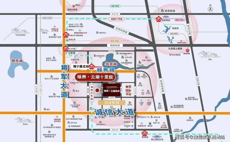 绿洲·云湖十里院位于禄口空港新城板块义庆路与星汉路交汇处,旁边就是去年南京洋房卖得最好的绿洲云湖悦府,靠近地铁S1号线翔宇路北站,周边有如意湖、温德姆酒店花园、会展中心、赫贤学校等配套。