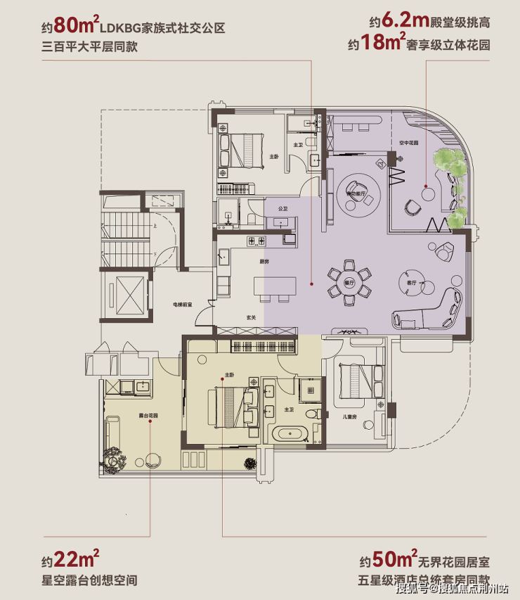 1、社交露台+私享露台,前庭后院双空中花园体验