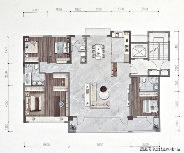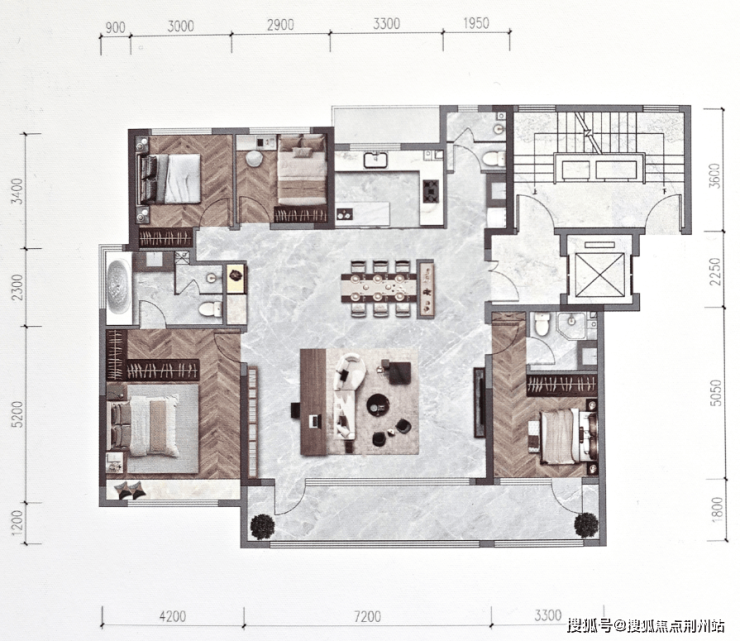 建面约172㎡的大平层也是同样的毛病,北向卧室只有2.9m,小面宽、短进深,尺度一言难尽,从户型图就能看出来舒适度堪忧。