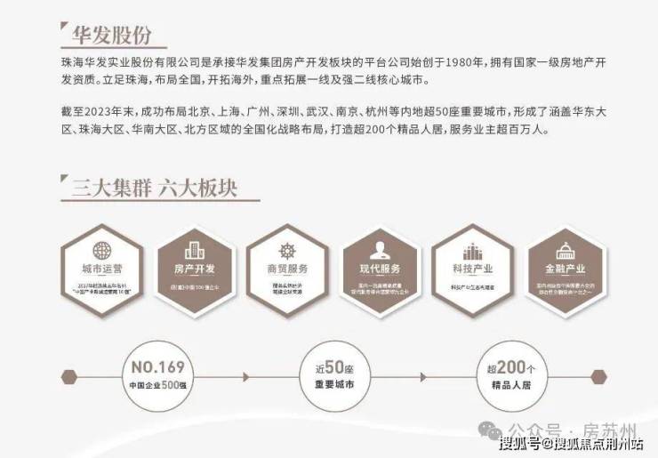 华发股份在房地产领域精研 40 余年,进驻全国近 50 座城市,打造超 200 个精品项目,深耕苏州 8 载,成功打造姑苏院子等项目,人居口碑颇丰。