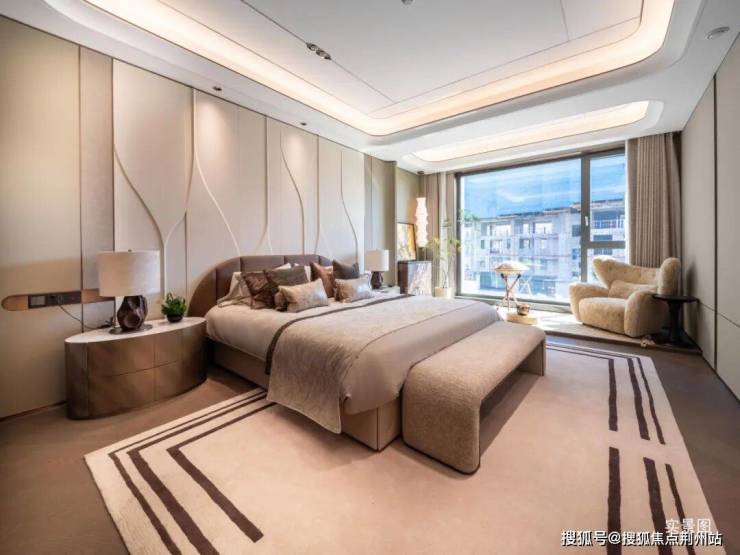 建面约378㎡户型,居住的私密性同样得到极致关照。套房式主卧堪称一个独立的奢华休憩系统,它不仅拥有宽敞的睡眠区,更配备了步入式衣帽间和设施完备的豪华卫浴,为主人营造出绝对的私密与尊崇。