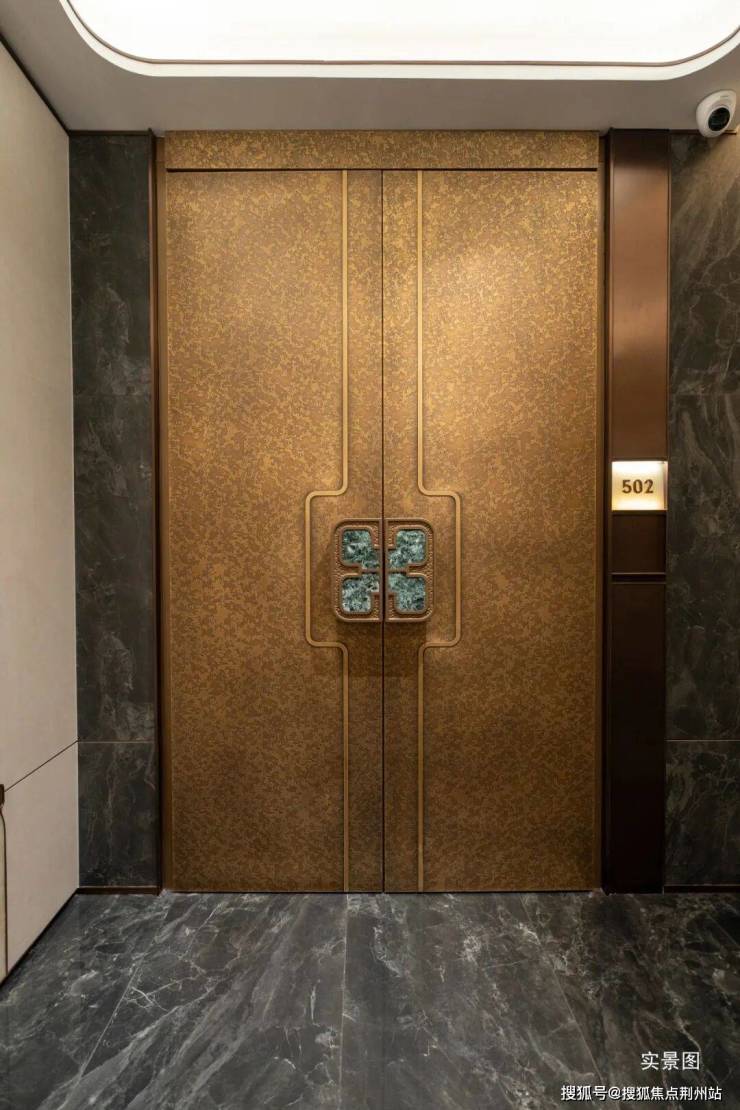 项目大量运用奢石。在材质选择上,地面通铺意大利进口的雪莉灰大理石,墙面采用质感独特的压花立体木饰面与进口皮革点缀。