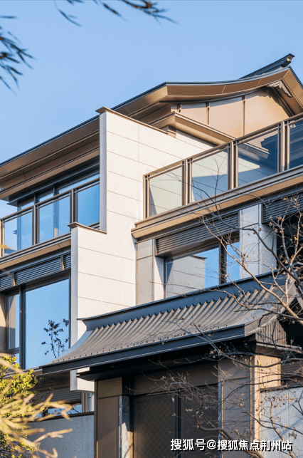 设计追溯杭城深厚古韵,以“重檐双坡,叠叠弄潮”的意向诠释屋顶下瞰江栖居的诗意:杭州高定府苑双坡屋面形制、高台宫殿的立面构图、重檐高阁的视觉层次感与传统木构语言的提炼与转译……师古不泥,精研匠筑,呈现清雅朴拙的禅静中式建筑意境。