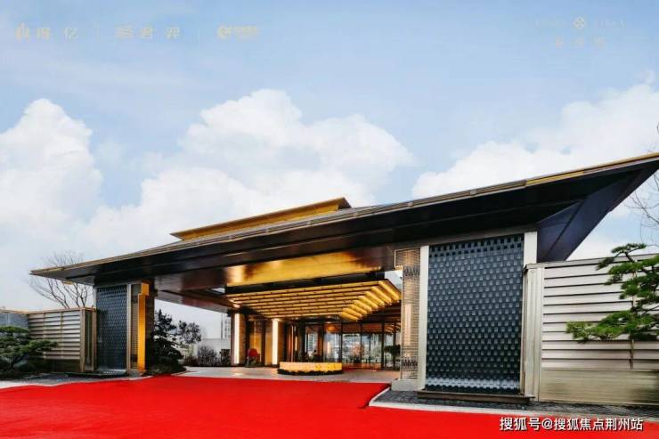 三重檐九重脊的实景门头,复刻皇家礼制,每一处飞角衔云的细节,都彰显着生生不息的东方气韵;泗水归堂的格局藏纳“水聚天心,福禄盈门”的美好寓意,与入口景墙叠瀑相映成趣,叠水映翠间净化尘嚣;门前石狮镇宅,迎客松傲然挺立,发光奢石在光影中流转…… 这场盛典尚未开场,尊贵感便扑面而来,令来宾们无不赞叹。