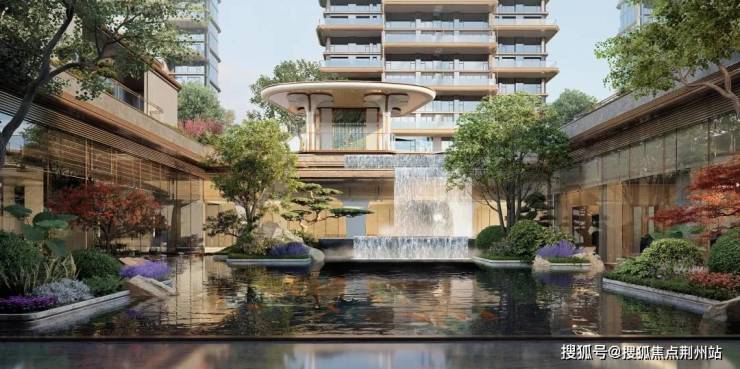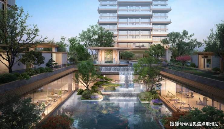 再进立体园林,约600㎡下沉庭院借宋画“三叠泉”之意,打造近七米飞瀑流泉,山、水、亭、树层叠布局,与楼王立面相映成画——生活不在远方,就在这一方叠水映天的静谧之中。