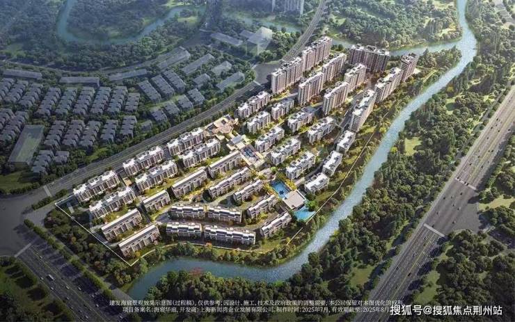 一是自身低密度和景观优势,容积率1.55的超低密度社区,三面都被绿地与河道包裹,内部一条约200米长繁花长廊与一条沿河岸绿廊交织。