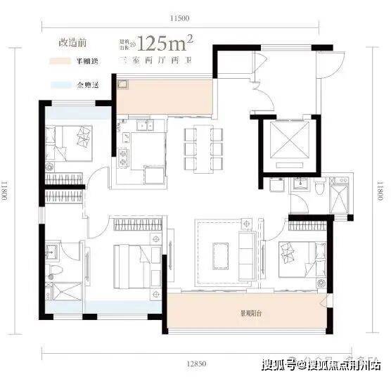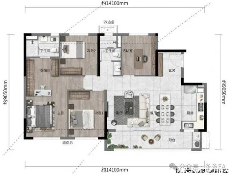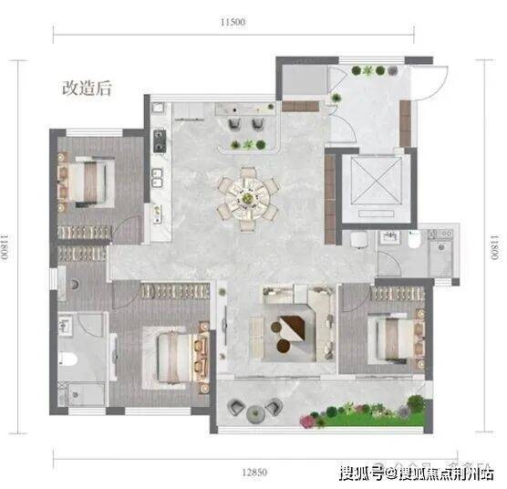 南北双阳台通透设计;客餐厅面积大空间舒适,尤其改后的餐厨空间;