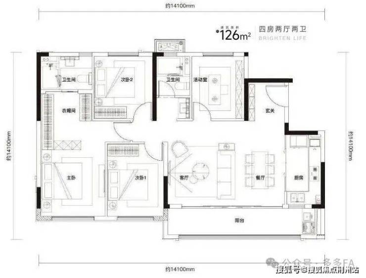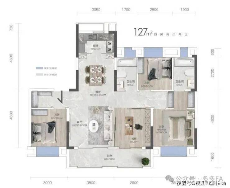 再放上万科光谷锦耀的18层两梯两户126平米4房2卫,如下: