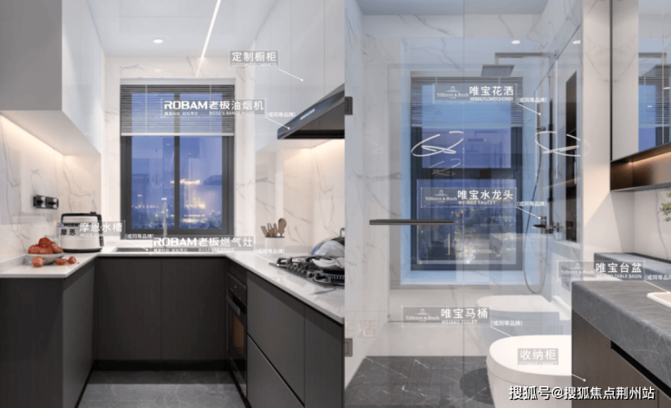 在精装交付上,臻选品牌;配置日立中央空调/地暖、格兰斯柯新风、室内智能家居系统、能率热水器;浴室物件臻选唯宝或同档次品牌;厨房的不锈钢单水槽、水龙头使用摩恩或同档次品牌,老板牌的灶具!同时精研人居,升级调整家居细节,在转角处采用铝合金踢脚线,耐久度高、环保美观,带来舒适生活体验。