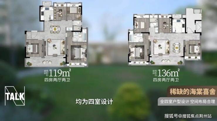 海棠喜舍首开洋房户型面积段为约119㎡和约136㎡,均为四室设计,南北通透,北侧无连廊,完全满足一家人的舒适生活。
