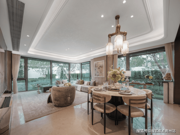 约6-7米挑高的架空层与约200米无雨归家连廊的设计,将社区底层转化为流动的社交聚场,架空层设计的泛会所更嵌入艺术长廊与茶室,承载业主人场的情绪价值,维系社区邻里间的情感纽带。