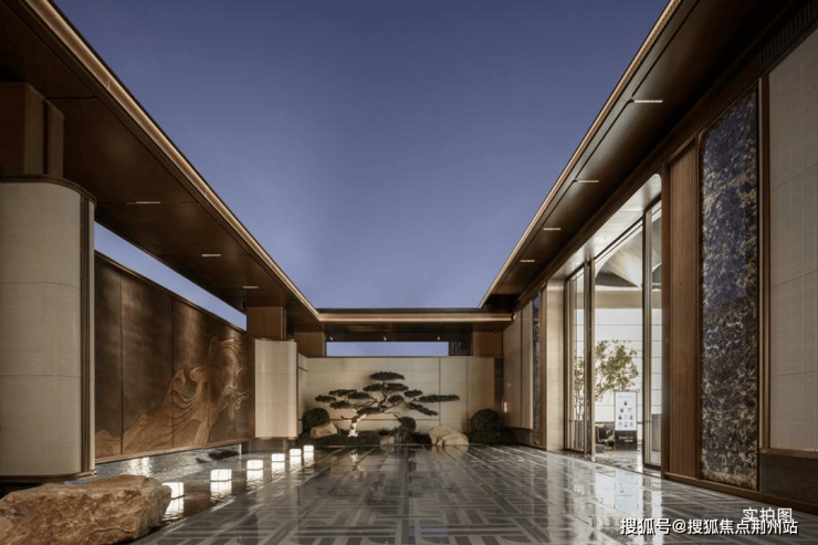 在门头与下沉会所之中,数株树龄悠长的迎客松经精心挑选,全冠移植于此,其苍劲的枝干与蓊郁的松针,与基座采用顶级潘多拉透光奢石的精工细作相映成趣。