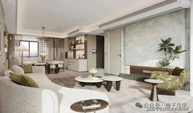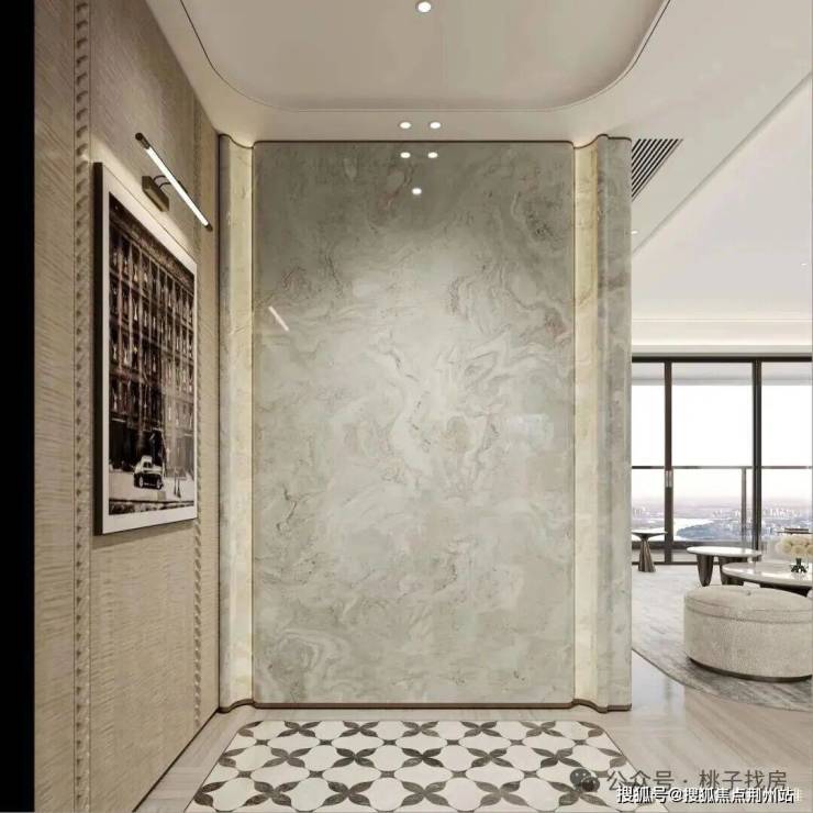 除了大门、公区、会所等,室内也有采用诸如皇家白玉、劳力士灰、安第斯雪景、希腊木纹等大量石材装点,有着独特纹理,温润质感,为空间增添了自然优雅的格调。
