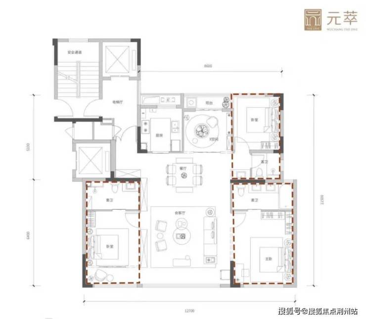 南向双主卧套房:南向开间约3.8/3.3米,面积均超20㎡,已达到常规140㎡+户型的主卧水准;