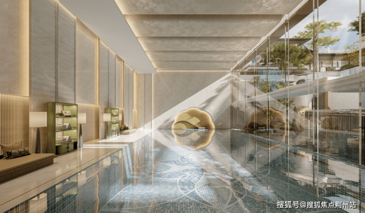 对标度假酒店的恒温泳池,让业主仿佛游进了一幅垂直山水画,直面超9米高差的垂直山水庭院。