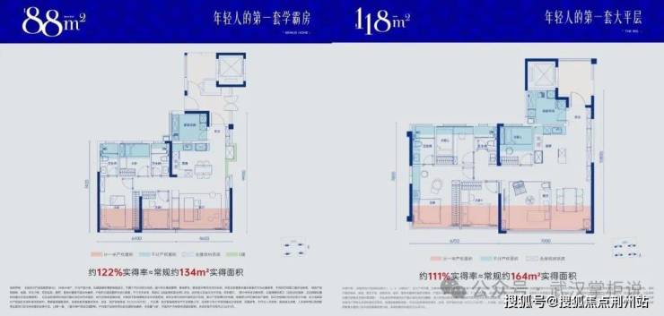 项目主推建面约102-138㎡三房、四房,坐拥南向面宽最大化+南北通透双阳台+实用功能空间+私享电梯厅等多重优势,预计得房率很高。