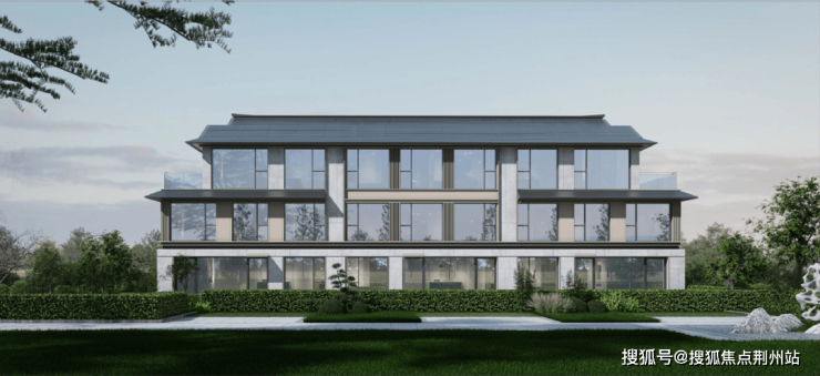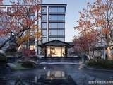 3F联效果图如下,简约新中式风格,外立面运用有石材等材质。