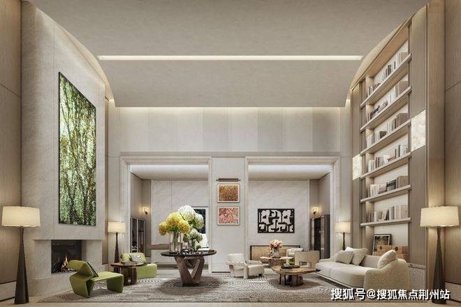◎ 超宽绰会客空间——约9.9米巨幕面宽 + 约6.3米大尺度景观客厅(朝南三面宽)+ 约6.5米挑空 迭新视界排场