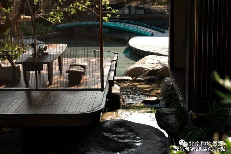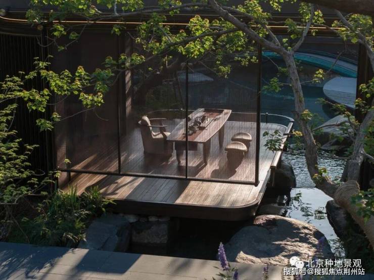 “在朗云的园林世界里,从一个房子到另一个房子,只有20多米。但却要翻过一座山瀑,穿过一片林,跨过一座桥,林中的溪流之上落着一个水轩。坐在里面可以倚着树隔着岛望向对岸的房子,这期间距离很近,游历很远,在游历山水中让人忘却了时间,享受山水。这也是苏州古典园林穿越时空放下形式带给我们的诗意——小中见大 ”。