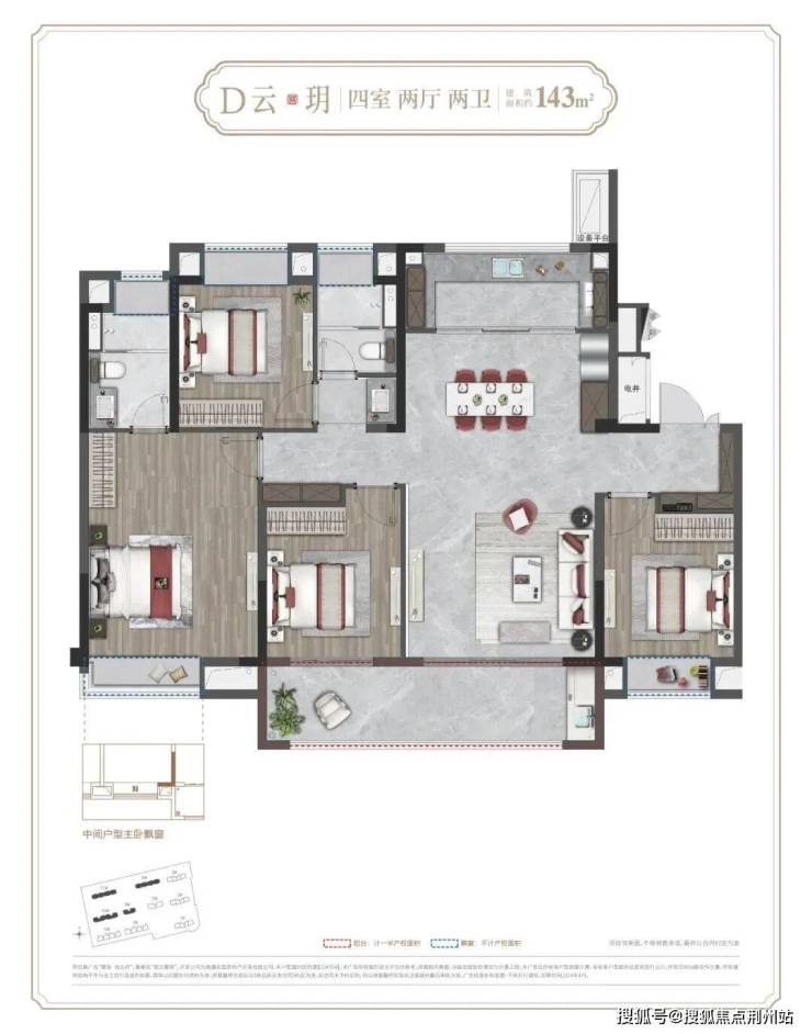 南向面宽约11.9m(轴线距离),充分保证室内采光通风;客餐厅无界融合,延展生活空间;该户型还可改造为灵动3+1室,适配更多居住需求。