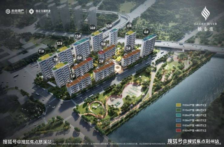 其次,从规划来看,映秦淮还是南站板块最低密楼盘,容积率约1.8,打造13栋8-10层洋房+17-18F小高层,户型约103-182㎡,是南京极其稀缺的河景低密四代宅。