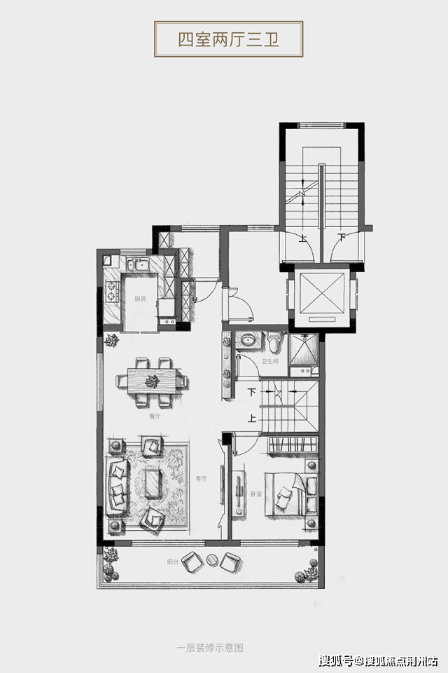 目前主推的建面约182方下叠户型,堪称奢阔大四房的宜居样板。