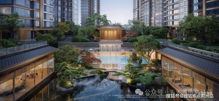 更令人惊艳的是,在每个空间中,都可以通过大面积落地玻璃,欣赏到不同视角的庭院风光,既有飞瀑落池的灵动,又有叠山理水的朦胧,居住者穿行于树梢、绿岛、流水、拱桥之中,来往于各功能场景之间,这种纵行山水的惬意被建发·望江完美的纳入生活。