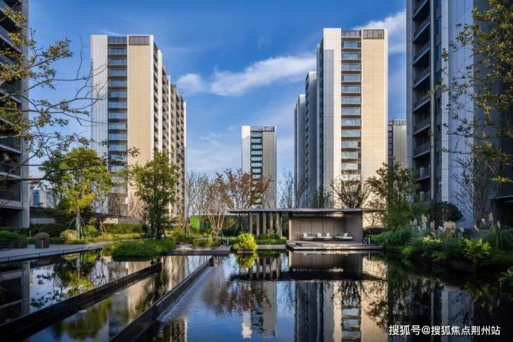 项目不仅坐拥主城稀缺湖景——东沙湖公园,园区景观本身也借鉴“曼谷四季酒店”设计灵感,匠心打造。在人行入口、园区内部、中轴景观等节点,运用叠瀑、镜面、借景等方式打造了多处水景。同时,园中的植被也大量取材于东沙湖,使内部园景与外部湖光生态交融,形成“内外双园”的共生格局,重新定义了高品质的城市栖居生活。