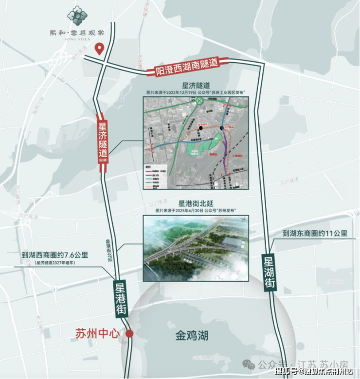 更值得注意的是,它不再是单纯的居住区,而是一座兼具城市能级与生活氛围的新城样本。项目距离湖西商圈约7.6公里,到湖东商圈约11公里,凭借在建的星济隧道(2027年通车)和阳澄西湖南隧道,以及地铁8号线可丝滑链接园区核心。