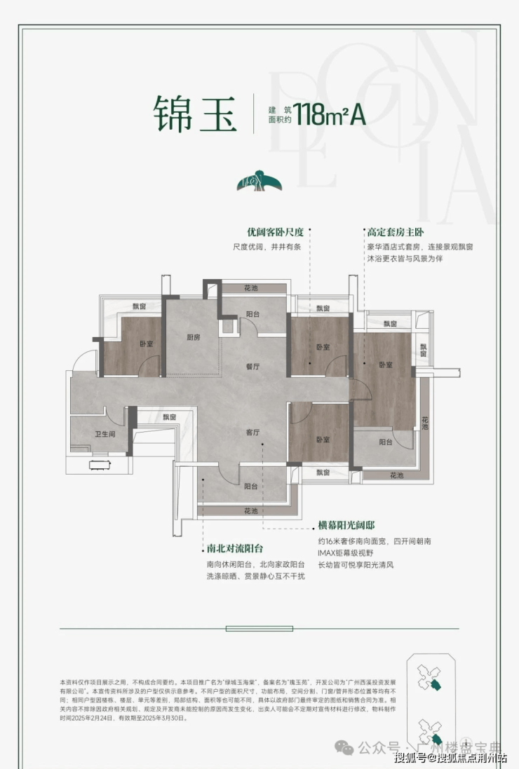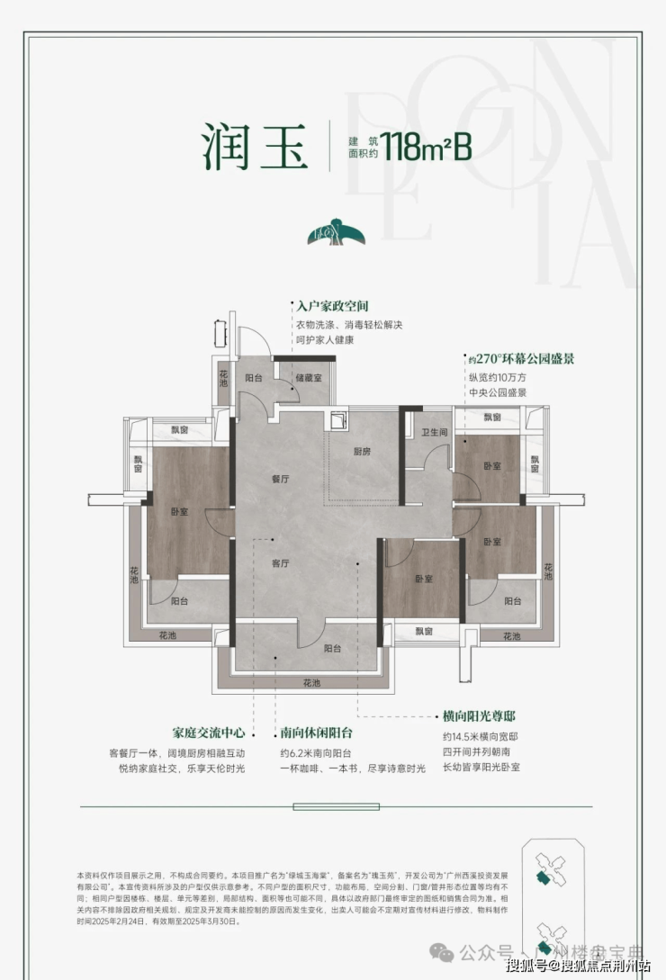 建面118平A户型四房,同样是南北对流设计,和105平户型有点像,但是该户型做到了南北双阳台,会更加完美实用。