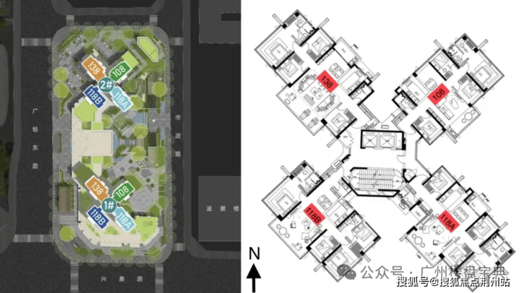 绿城玉海棠占地面积并不大,只有两栋住宅,都是以四房改善户型为主,整个项目的定位,还是偏向高端改善的,分别有105、118、138m²以及顶复200m²的产品,起步户型比番禺广场其他项目更加纯粹,而且使用率更加高。